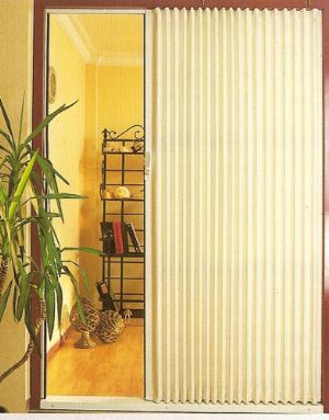 Katlanır kapılar hazır ölçüde olmayıp ölçüye ve renge göre özel olarak imal edilmektedir. Katlanır kapıların iskeleti galvanizli saç çelik tel,alüminyum ve demir profillerde oluşmaktadır. Zemininde ray yoktur. İsteğe bağlı olarak takıladabilir. |
